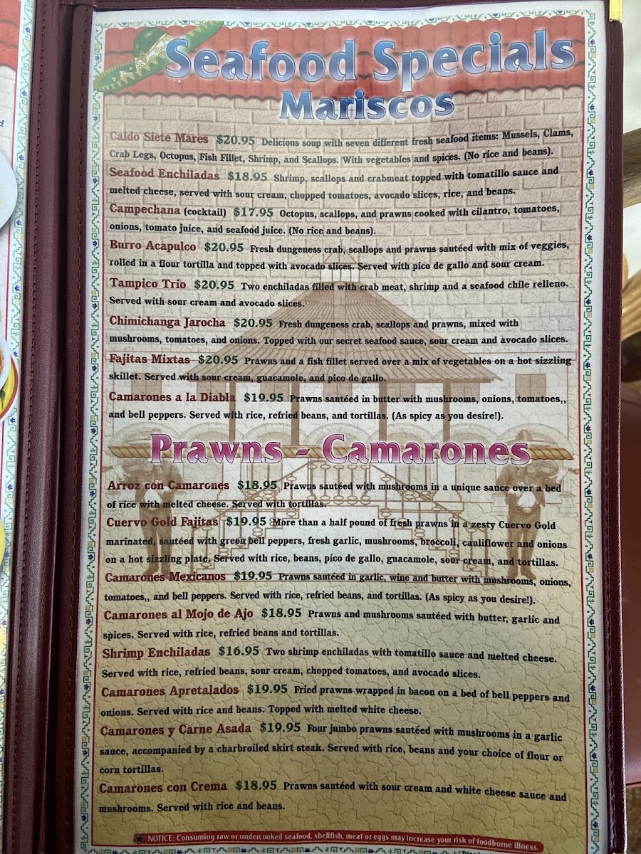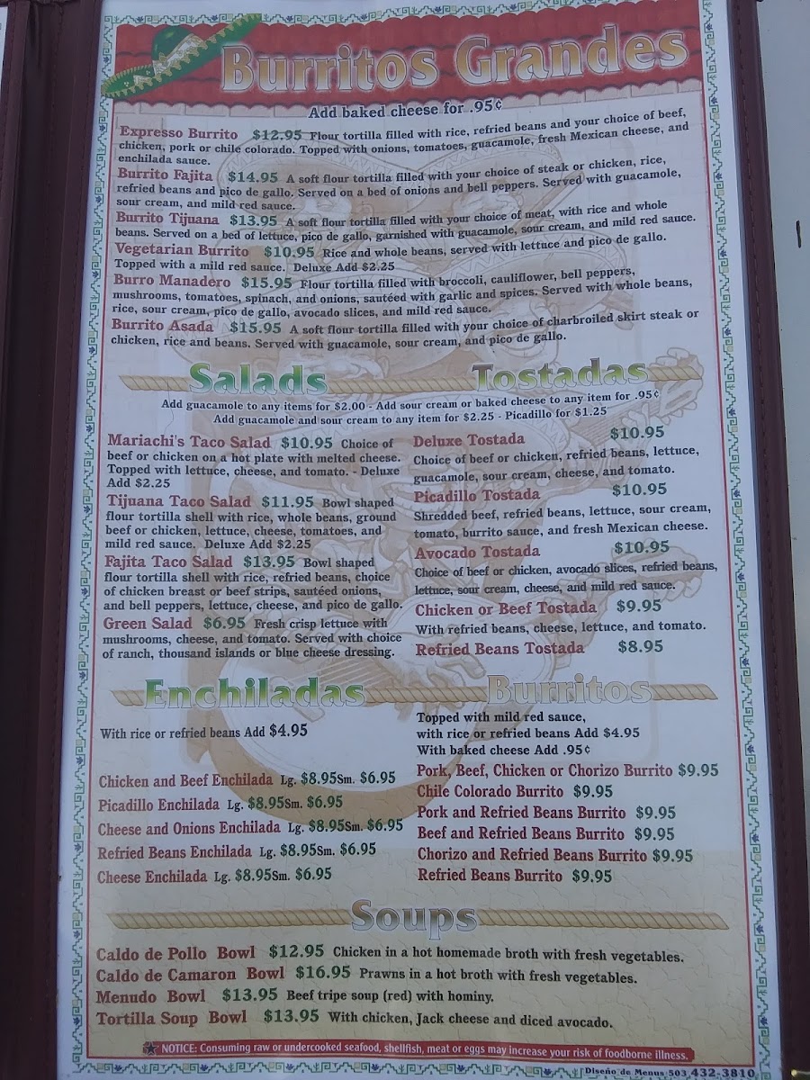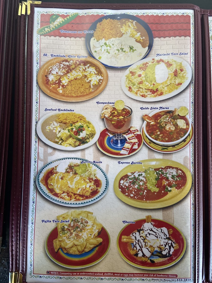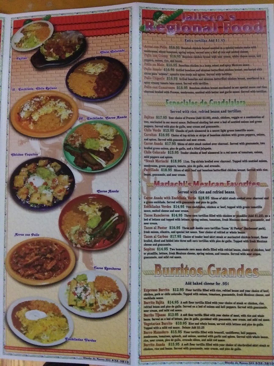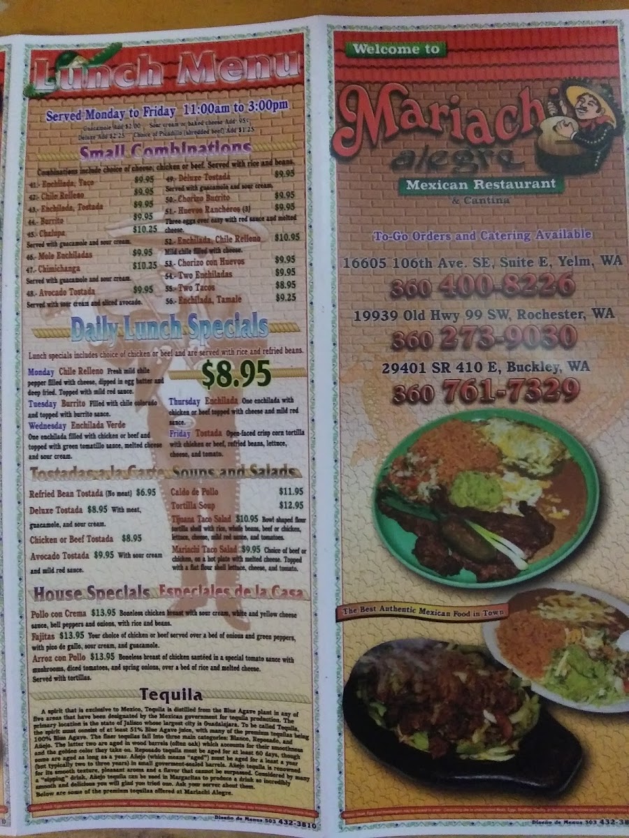 Mariachi Alegre Menu